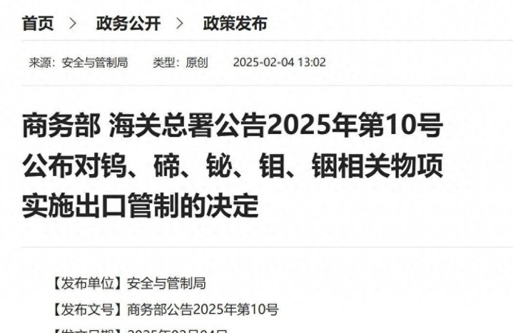 1. 《商务部回应对钨等物项实施出口管制》 新华网 2025年2月4日